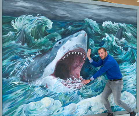 Freuen Sie sich auf ein Dutzend lebensgroßer Riesen der Meere, eine der größten Sammlungen Mitteleuropas voller Haikiefer und -zähne aus aller Welt und nicht zuletzt einen interaktiven Bereich, in dem Sie mit Hilfe von Virtual Reality in die "blaue Welt" eintauchen können, oder eine Klangwand, die Ihnen die Stimmen, Geräusche und Gesänge von Dutzenden von Unterwasserlebewesen bietet.